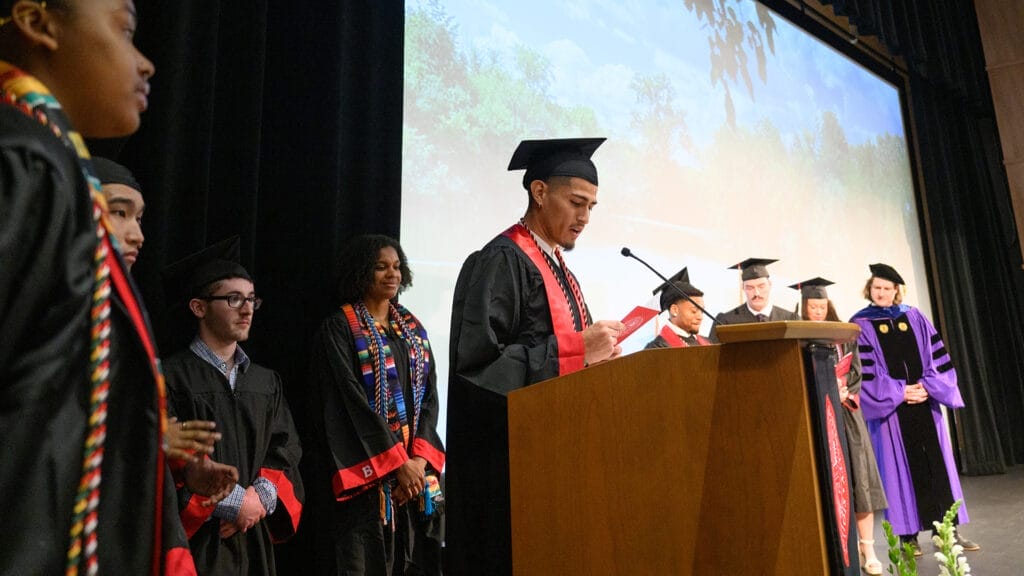 Only undergraduate students graduate with honors distinctions. Graduation honors are determined on the basis of coursework completed only at Benedictine University. Eligibility for graduation honors is contingent upon completion of the following specified number of undergraduate credit hours (excluding external, non-BenU credit hours) and achieved cumulative GPA at BenU. Students with any graduation honor are eligible to receive a gold honor cord to be worn with their graduation regalia.